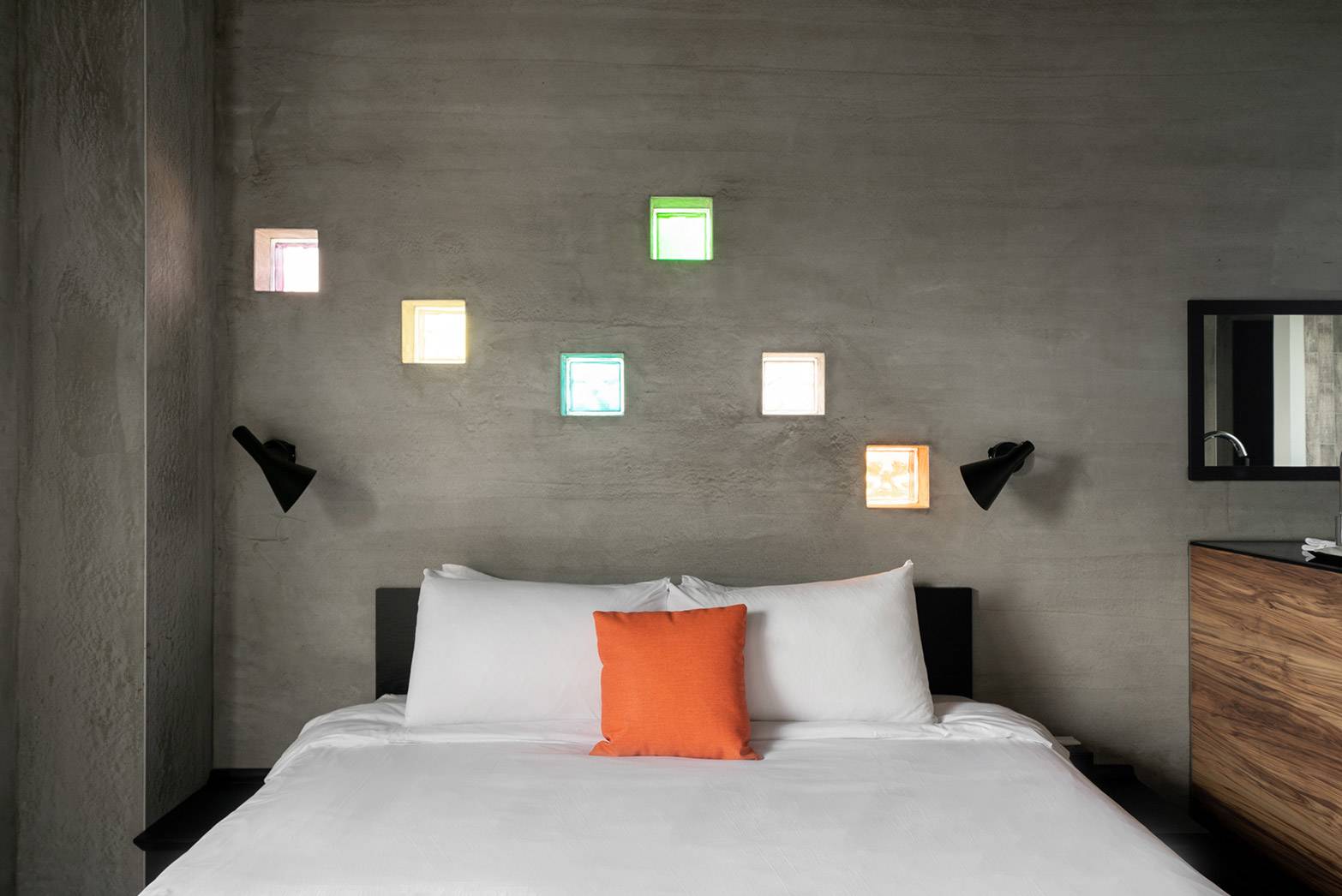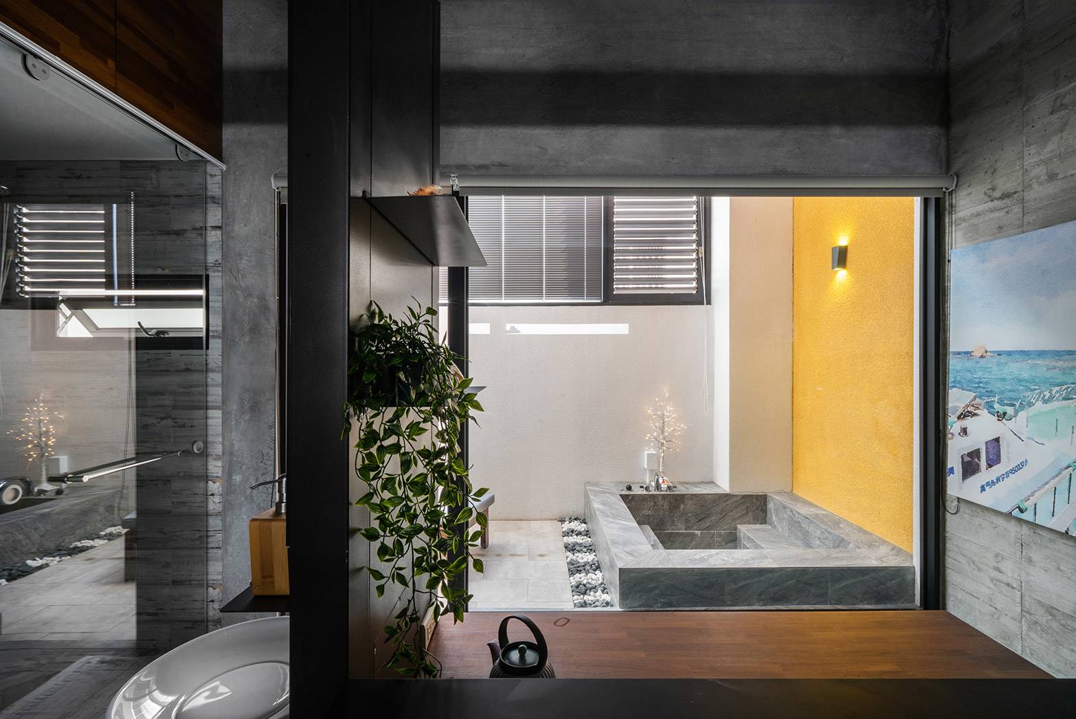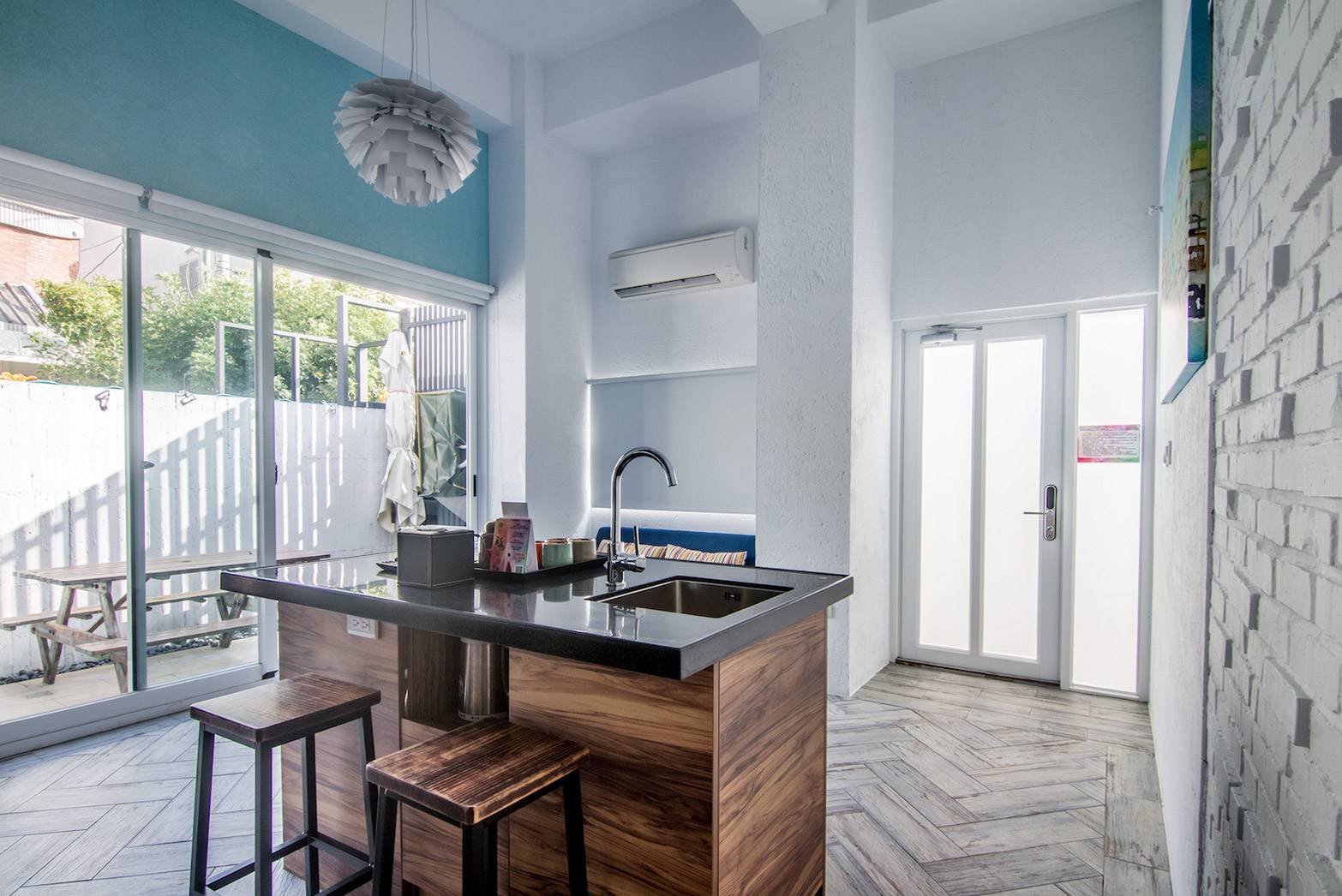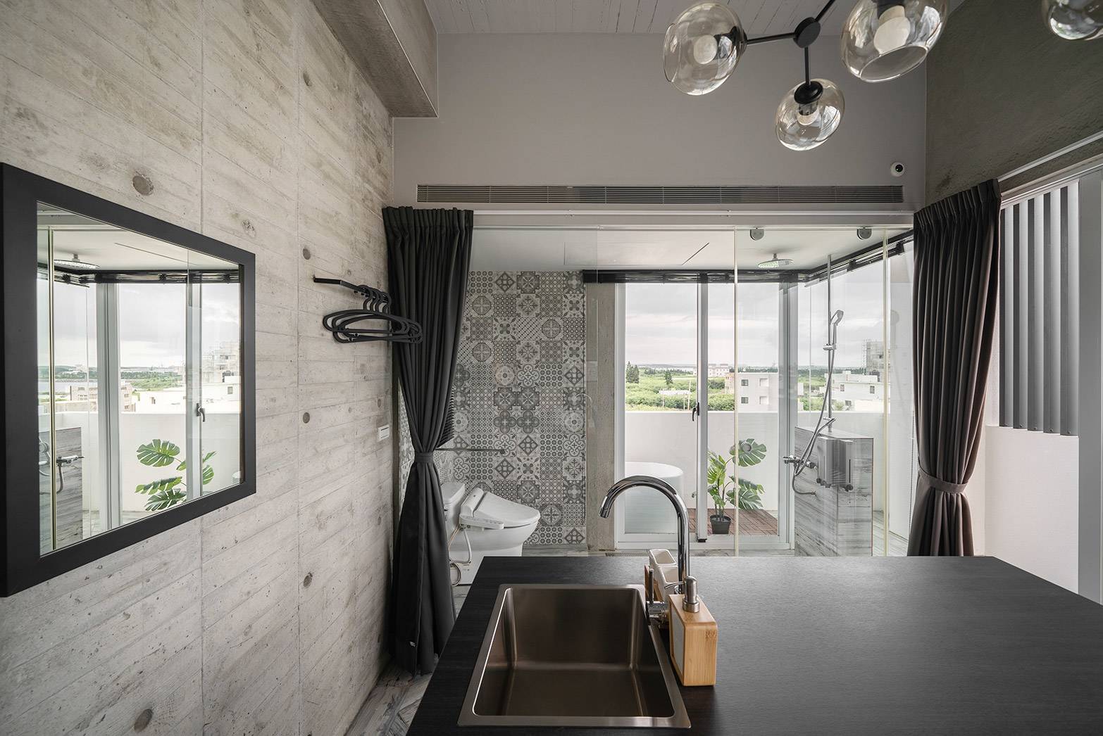 以熱帶離島反射係數最佳白色抿石子作為基本色調,且各開窗處以配合室內使用之原則下自然形成不規則的開孔,模擬白色珊瑚礁的自然氣孔。