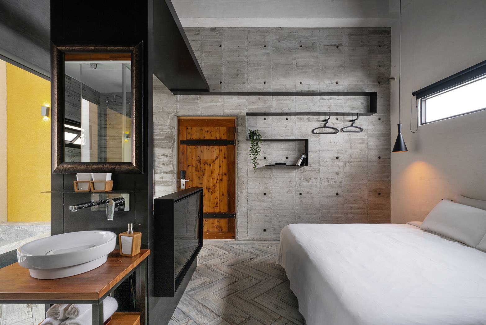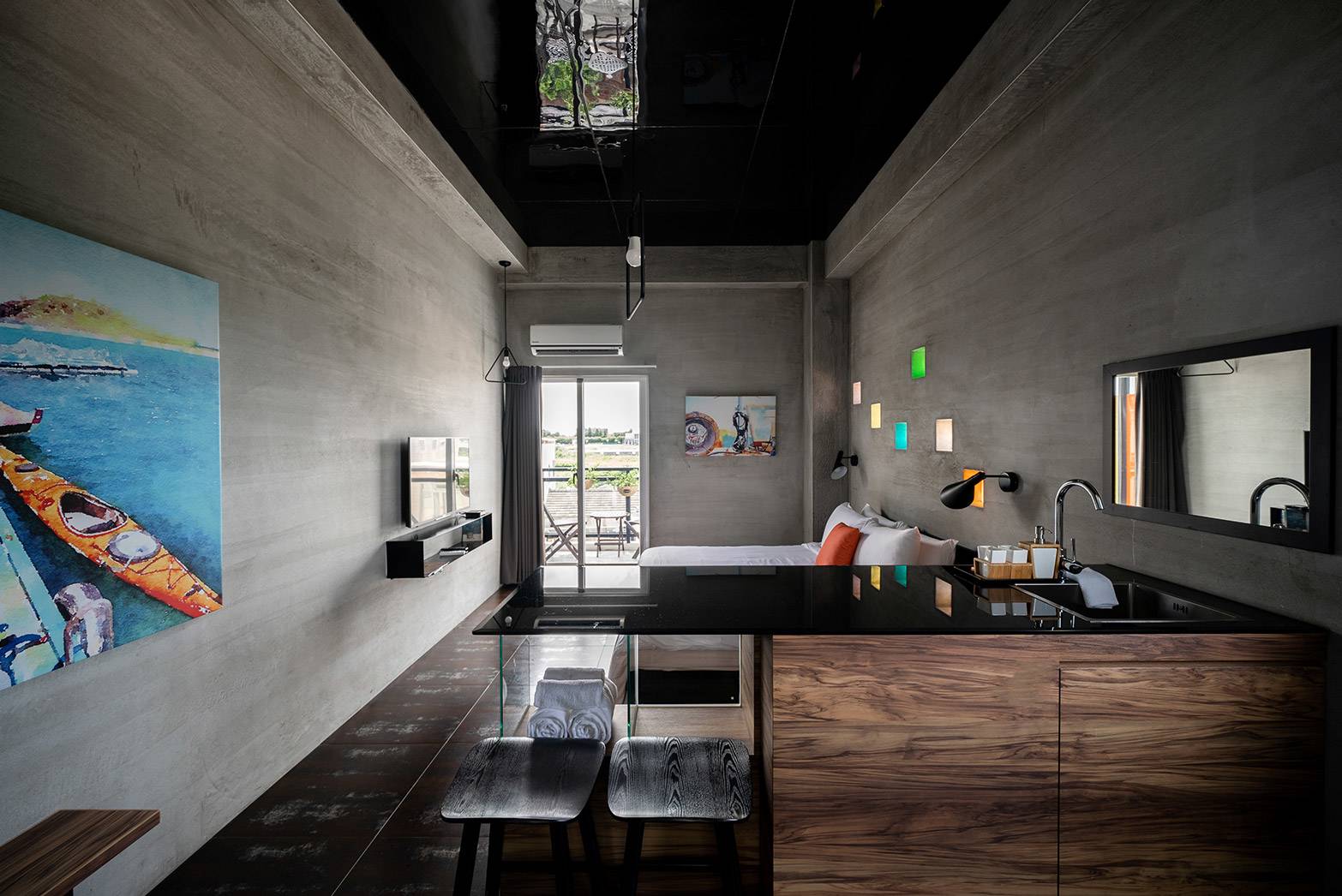 外觀設計採用澎湖玄武岩發想的深色片狀石材作為裝飾主要材質。